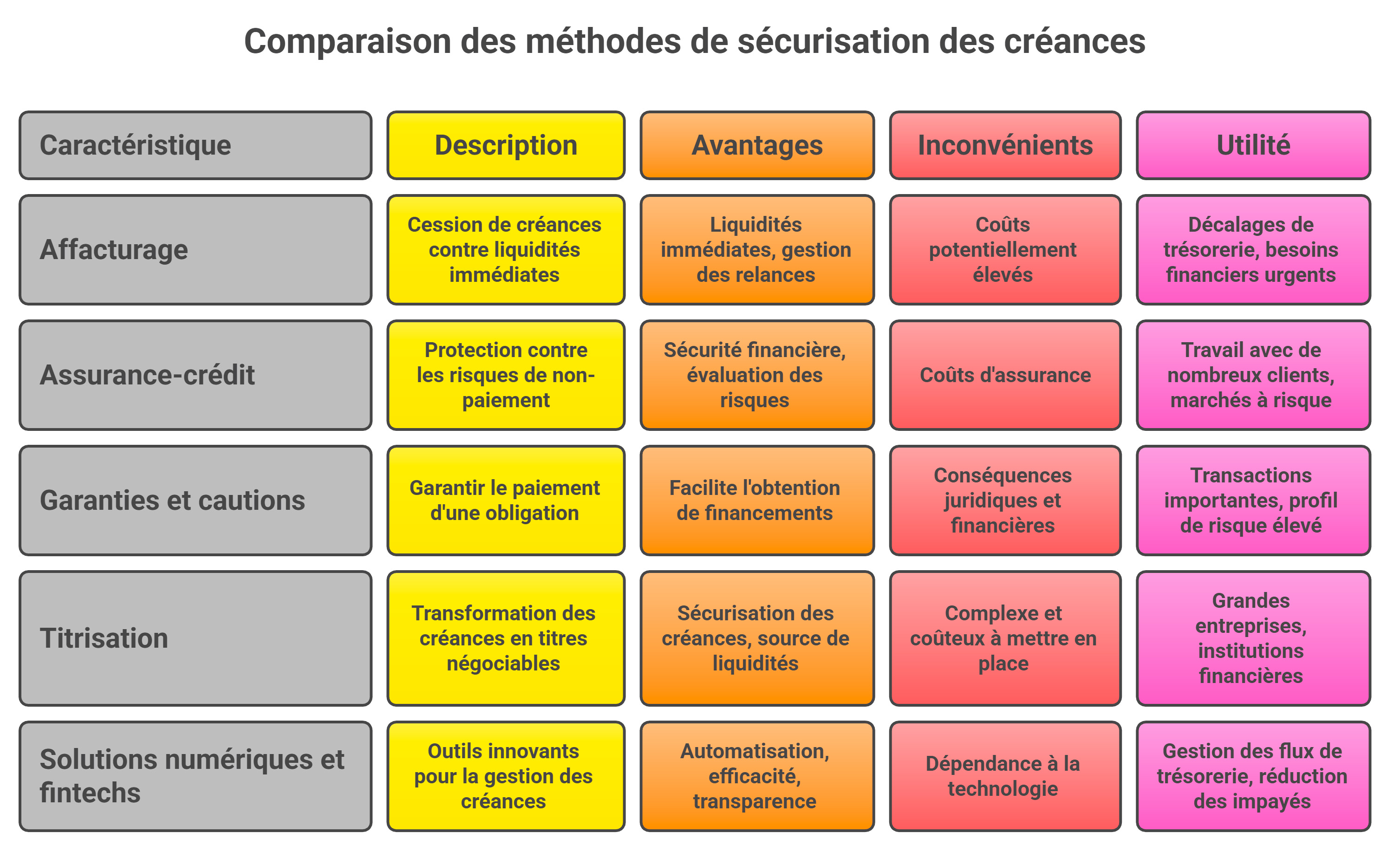La sécurisation des créances est un enjeu majeur pour les sociétés, particulièrement dans un contexte économique où les risques d’impayés sont accrus. Pour protéger leur trésorerie et assurer leur stabilité financière, les structures disposent aujourd’hui de plusieurs méthodes efficaces pour sécuriser leurs factures. Ces solutions, allant de l’affacturage à l’assurance-crédit, en passant par la titrisation et les technologies fintech, offrent des moyens variés pour minimiser les risques et optimiser la gestion des flux de trésorerie. Chaque méthode présente des avantages spécifiques et peut être adaptée en fonction des besoins particuliers de l’entreprise et de son environnement commercial. Ce chapitre explore en détail les différentes stratégies disponibles pour la sécurisation des créances, offrant ainsi un aperçu des outils essentiels pour toute société souhaitant se prémunir contre les aléas financiers.